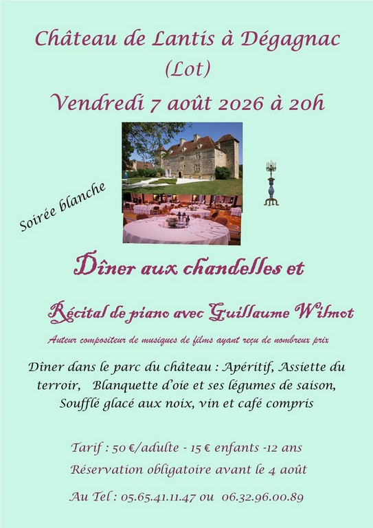 Soirée blanche aux chandelles. Récital de piano avec Guillaume Wilmot. Le vendredi 7 août 2026.