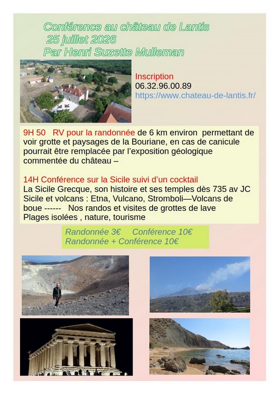 "Sicile gracque et les volcans de boue. L'Etna". Par Henri et Suzette Mulleman. Conférence et randonnée. Samedi 25/07/2026.